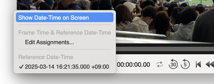 - Choose the Assign Reference Date-Time for "00:08:10.13000"... item from the pop-up button as shown below.