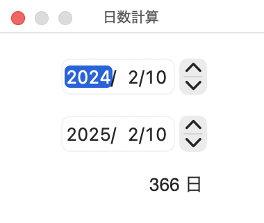元の日付が違う、複数のファイルを一括変換する場合は、日数による変換をお勧めします。日数による変換を行うことで、月の持つ日数の違いや、年ごとの閏日の有無を含めた日数変換を、それぞれの日時にさせることができます。日数の計算には、「表示」>「日数計算を表示」を選択し、日数計算ウインドウを使用して下さい。