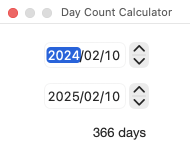 To calculate the number of days, choose View > Show Day Count Calculator and use the Day Count Calculator window.